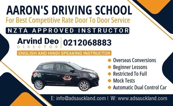 Welcome to Aaron's Driving School, where we will equip you with core foundational skills to ensure you are a safe and confident driver on the road. My name is Arvind and I am committed to providing the best driving services, so you can be confident behind the wheel and take the freedom in your own hands, being taught by an NZTA approved instructor and former VTNZ driver testing offer with over 12 years of experience.